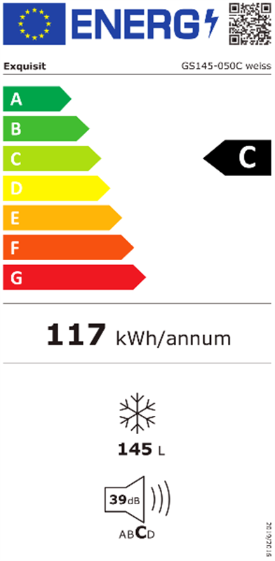 - Energieeffizienzklasse E mit nur 144 kWh/Jahr Verbrauch,