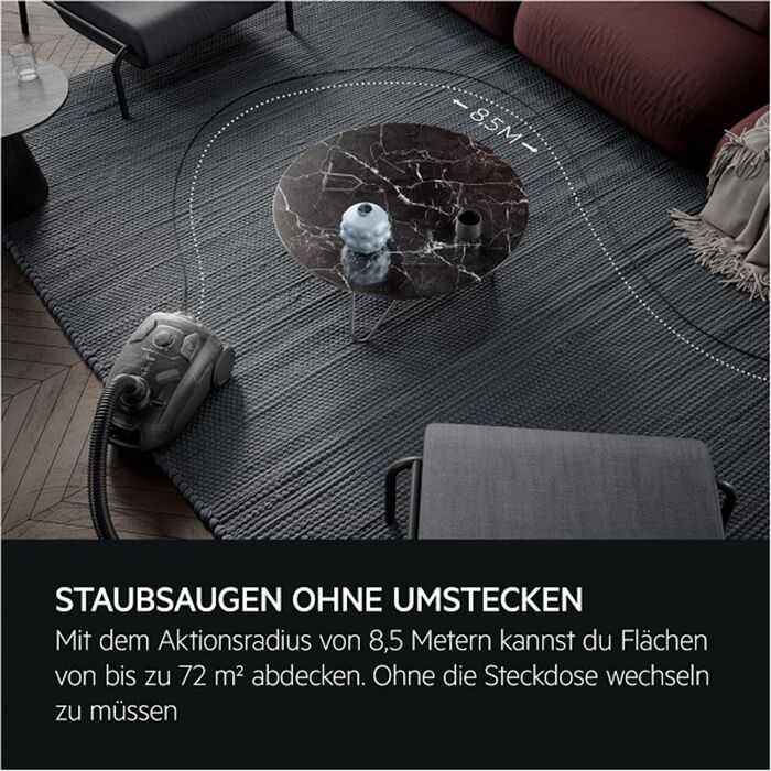 Kompakt, kraftvoll, leicht zu handhabenDer kompakte 5000 Staubsauger entfernt effizient Staub und Schmutz von allen Oberflächen. Mit der AllFloor Bodendüse kannst du problemlos von Hartböden auf Teppiche wechseln. Weiteres Zubehör ist dank integrierter Ablage jederzeit griffbereit. Kraftvolle und mühelose ReinigungMit einer Kombination aus starker Saugleistung und der neuen AllFloor Bodendüse entfernst du effizient Staub und Schmutz auf allen Bodenbelägen. Zudem ist die AllFloor-Düse leicht mit dem Fuß umstellbar. Leichte Manövrierbarkeit und großer AktionsradiusGroße Räder für einfaches Manövrieren in alle Richtungen. Mit dem Aktionsradius von 8,5 Metern kannst du Flächen von bis zu 72 m² abdecken, ohne die Steckdose wechseln zu müssen. Für ein sauberes ZuhauseDas effiziente Filtersystem ermöglicht die Entfernung von bis zu 99,99 %* der Partikel mit einer Größe von 0,3 Mikrometer – für saubere Abluft beim Staubsaugen.*Basierend auf internen Tests zur Filtration von Mikrostaubpartikeln der Größe 0,3-10 Mikrometer gemäß der Norm IEC62885-2:2021, 5.14 unter Verwendung von Standardsand/Staubpartikeln.  Kompaktes Design mit integriertem ZubehörDieser kompakte Staubsauger ist einfach zu handhaben und leicht zu verstauen. Er verfügt über integriertes, hilfreiches Zubehör für die Reinigung von Möbeln und schwer zugänglichen Stellen. Der ergonomische Griff am Gerät ermöglicht ein bequemes Tragen. Besonders nachhaltigDer 5000 Staubsauger und die Bodendüse sind aus bis zu 37 % recyceltem Kunststoff hergestellt.**ohne zusätzliches Zubehör