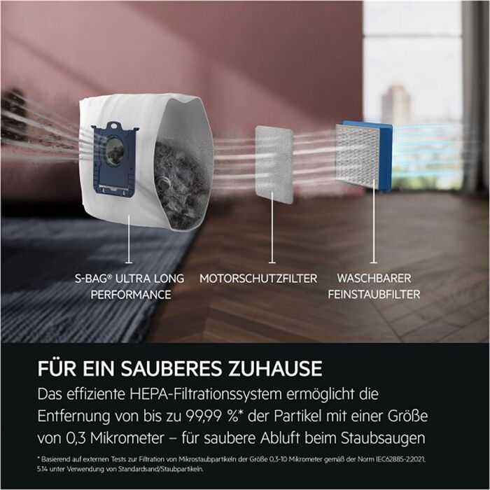 • Die HEPA-Filtration entfernt bis zu 99,99 %* kleiner Partikel.,