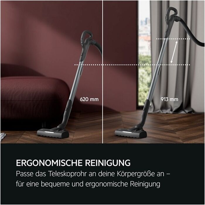 • LED Licht an der Bodendüse für bessere Sichtbarkeit beim Staubsaugen.