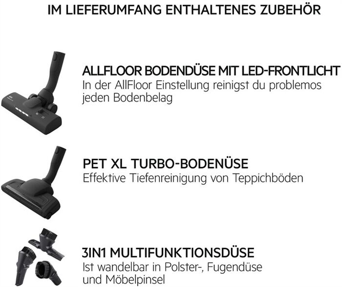 • Angenehmes und effektives Staubsaugen mit der AllFloor Bodendüse.