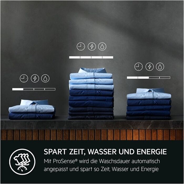 Durch spezielle Sensoren passt sich die Waschdauer und der Energieverbrauch immer an die Menge der Wäsche an. Das spart nicht nur Zeit und Energie, sondern beugt Schäden an Fasern vor und schont so die Kleidung.