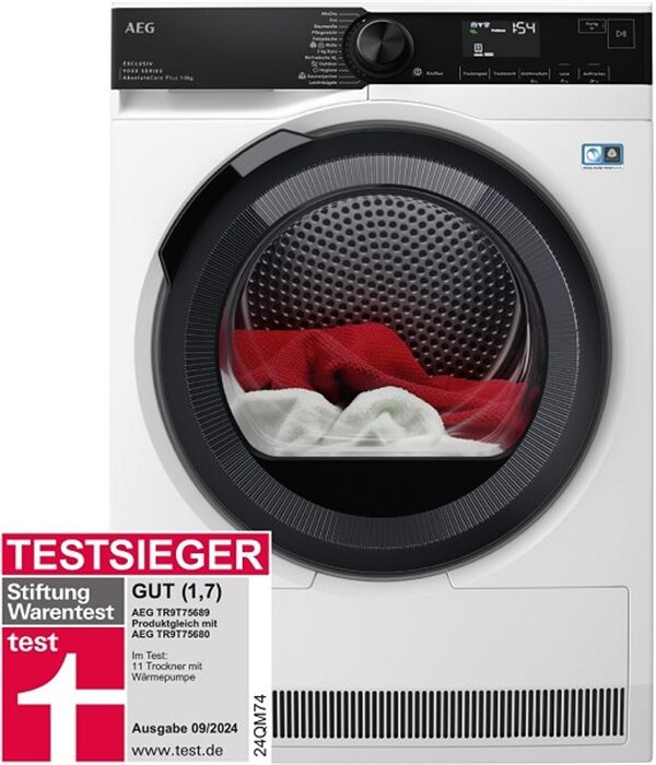 AEG TR9T75689 Wollprogramm Wärmepumpen-Technik Knitterschutz Mengenautomatik mit Waschzeitanpassung Kondensationseffizienzklasse B Hygiene-Programm