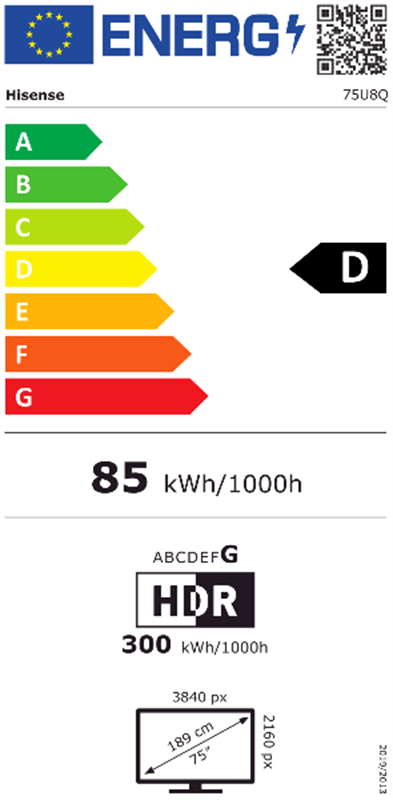 Energieeffizienzklasse (HDR-Wiedergabe):