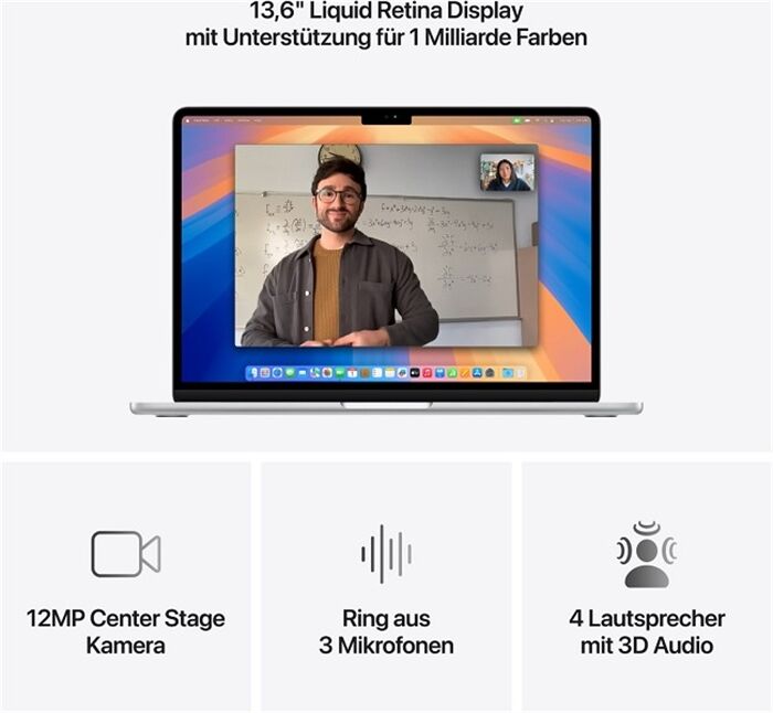 • EIN BRILLANTES DISPLAY - Das 13,6" Liquid Retina Display unterstützt eine Milliarde Farben.³ Fotos und Videos erscheinen mit einem beeindruckend hohen Kontrast und klaren Details, Text ist gestochen scharf