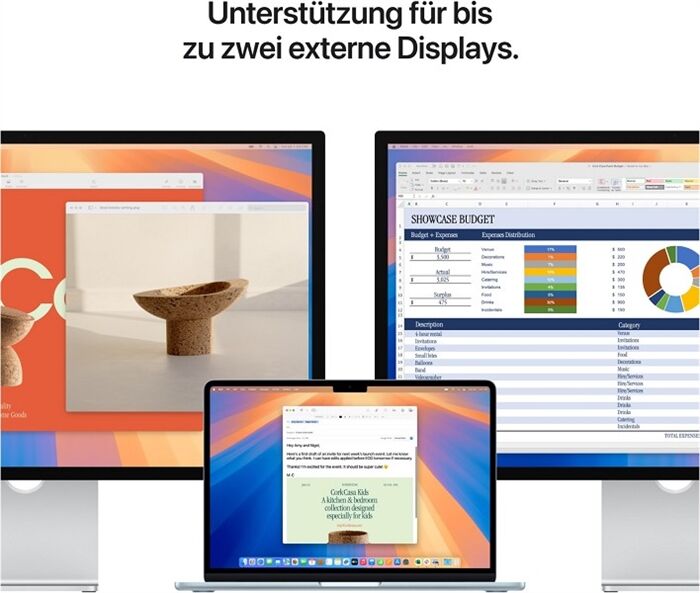 • EIN BRILLANTES DISPLAY - Das 13,6" Liquid Retina Display unterstützt eine Milliarde Farben.³ Fotos und Videos erscheinen mit einem beeindruckend hohen Kontrast und klaren Details, Text ist gestochen scharf
