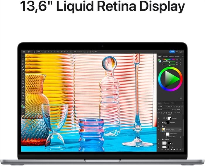 • 13,6" Liquid Retina Display mit 500 Nits Helligkeit und großem P3 Farbraum für brillante Bilder und unglaubliche Details³, 1080p FaceTime HD Kamera mit doppelt so hoher Auflösung und besserer Performance bei wenig Licht