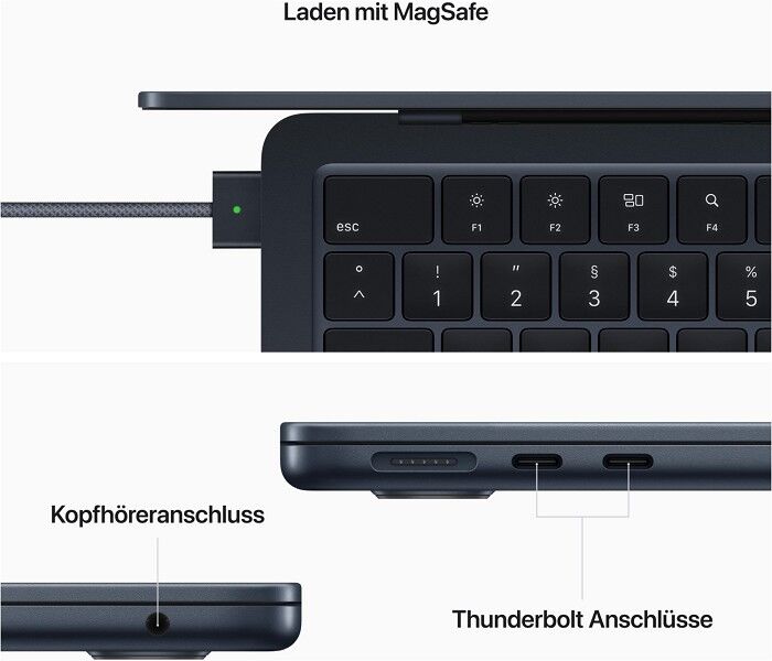 • Teile Inhalte nahtlos zwischen iPhone und Mac, MagSafe Ladeanschluss, zwei Thunderbolt Anschlüsse und Kopfhöreranschluss
