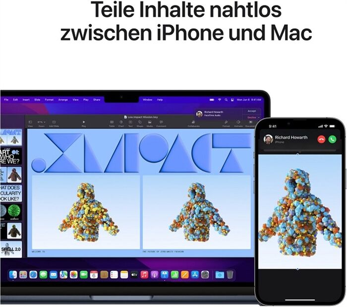 • 13,6" Liquid Retina Display mit 500 Nits Helligkeit und großem P3 Farbraum für brillante Bilder und unglaubliche Details³, 1080p FaceTime HD Kamera mit doppelt so hoher Auflösung und besserer Performance bei wenig Licht
