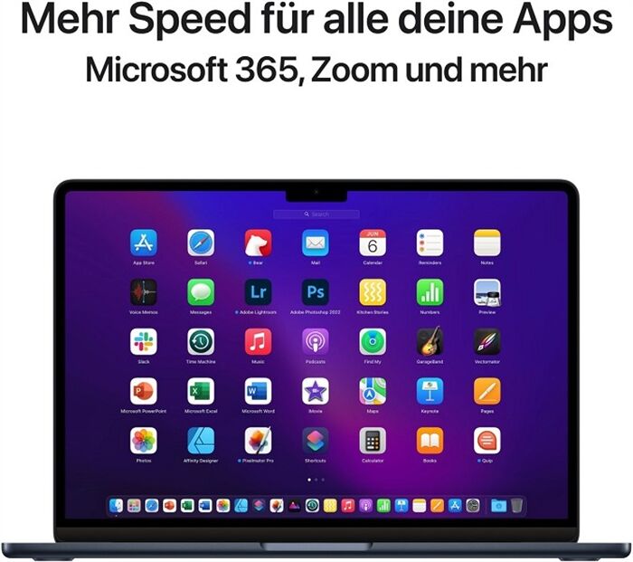 ³ Das Display des 13,6" MacBook Air hat oben gerundete Ecken. Als Standard-Rechteck gemessen hat das Display eine Diagonale von 13,6" (34,46 cm). Der tatsächlich sichtbare Displaybereich ist kleiner.