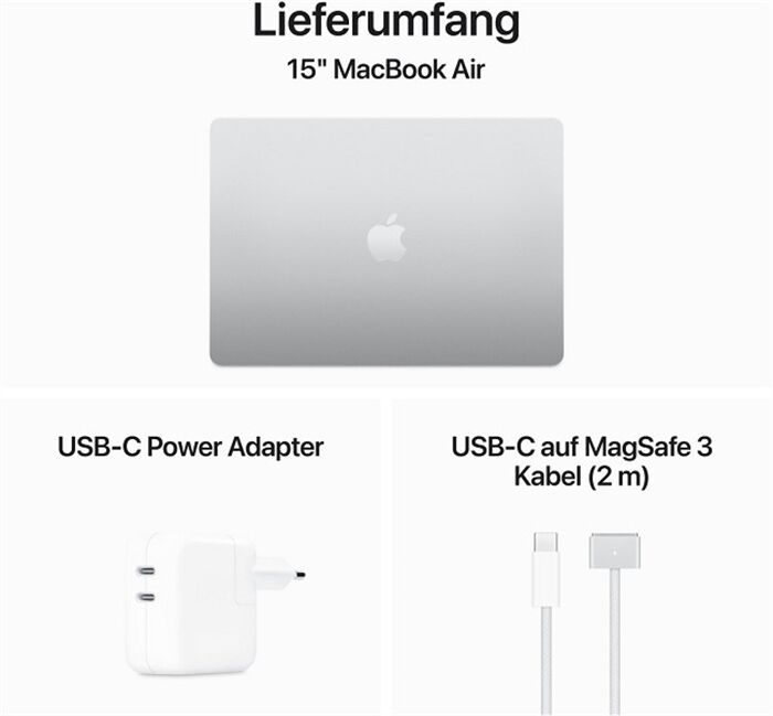 Artikeldetails für Apple MacBook Air 15" 2024 (MC9E4D/A) (silber) 15.3