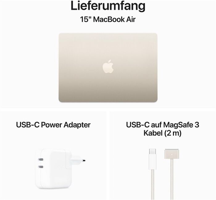 Artikeldetails für Apple MacBook Air 15" M3 (MRYR3D/A) (polarstern) 15.3