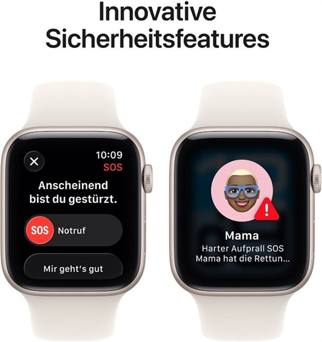 • SICHERHEITSFEATURES – Die Apple Watch SE 3 kann erkennen, ob du schwer gestürzt bist oder einen Autounfall hattest. Sie hilft dir automatisch, einen Notdienst zu kontaktieren und benachrichtigt deine Notfallkontakte.8