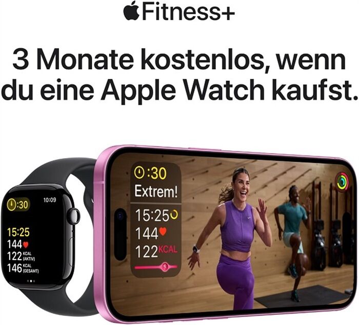 • STARK FÜR DEINE FITNESS – Die Trainingsapp bringt dir verschiedene Trainings und fortschrittliche Messwerte für mehr Informationen über deine Leistung beim Workout. Und mit der Apple Watch bekommst du 3 Monate Apple Fitness+ kostenlos?