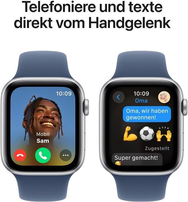 Wenn Sie Produktbilder der Apple Watch SE (GPS + Cellular) verwenden, fügen Sie bitte die folgenden rechtlichen Hinweise hinzu (gilt nicht für Außenwerbung): Armbänder nur zur Illustration und vorbehaltlich der Verfügbarkeit. Die Apple Watch SE erfordert ein iPhone Xs oder neuer mit iOS 18 oder neuer. Für Mobilfunkdienste ist ein Mobilfunktarif erforderlich. Weitere Infos gibt es beim jeweiligen Mobilfunkanbieter. Die Verbindung kann abhängig von der Netzwerk-Verfügbarkeit variieren. Informationen über teilnehmende Mobilfunkanbieter und die Verfügbarkeit gibt es unter apple.com/de/watch/cellular. Zusätzliche Anleitungen zum Einrichten findest du unter support.apple.com/de-de/HT207578.