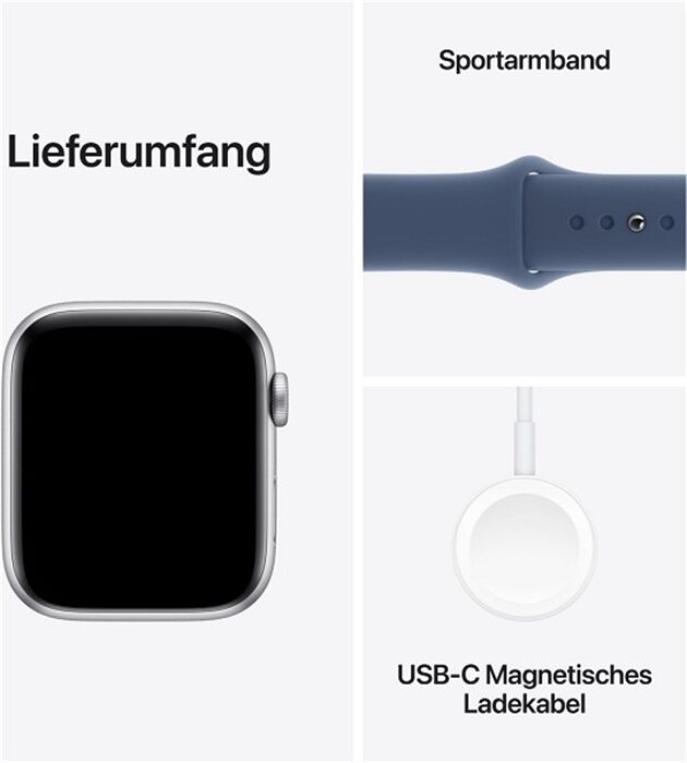 Artikeldetails für Apple Watch SE (44mm) 2024 GPS Alu mit Sportarmband M/L (silber/denim)