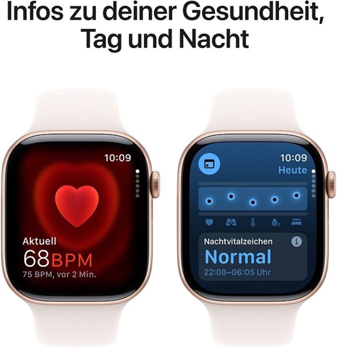 Die neue Apple Watch Series 10. Ein größeres Display, um mehr zu sehen. In einem dünneren, leichteren Design. Fortschrittliche Features für Fitness und Gesundheit mit Mitteilungen über Schlafapnoe¹ plus schnellerem Laden.