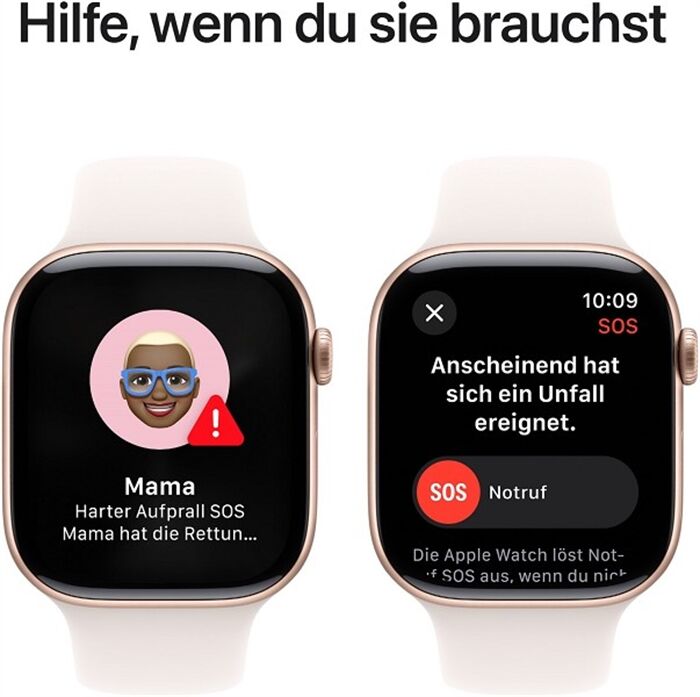 ⁴ Notruf SOS erfordert eine Mobilfunkverbindung oder WLAN Anrufe mit einer Internetverbindung von deiner Apple Watch oder deinem iPhone in der Nähe.