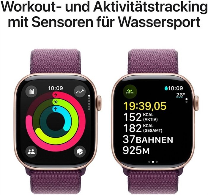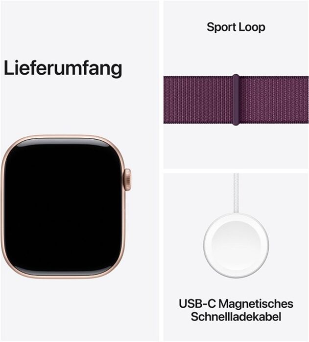 Artikeldetails für Apple Watch Series 10 (46mm) GPS Aluminium mit Sport Loo (roségold/pflaume)