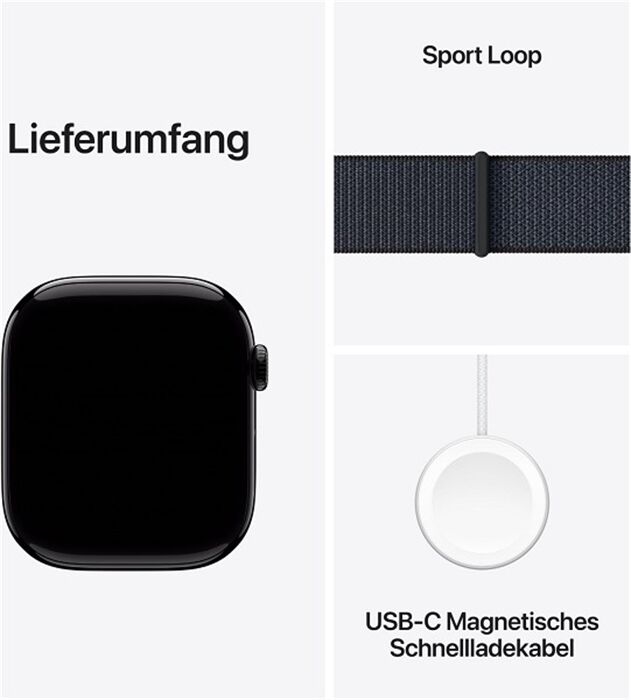 Artikeldetails für Apple Watch Series 10 (46mm) GPS Aluminium mit Sport Loo (diamantschwarz/tin)