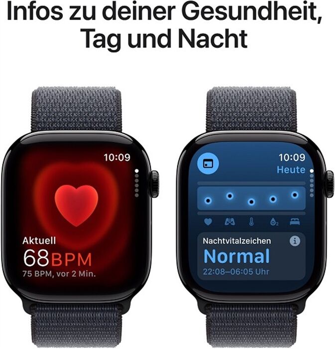 Die neue Apple Watch Series 10. Ein größeres Display, um mehr zu sehen. In einem dünneren, leichteren Design. Fortschrittliche Features für Fitness und Gesundheit mit Mitteilungen über Schlafapnoe¹ plus schnellerem Laden.