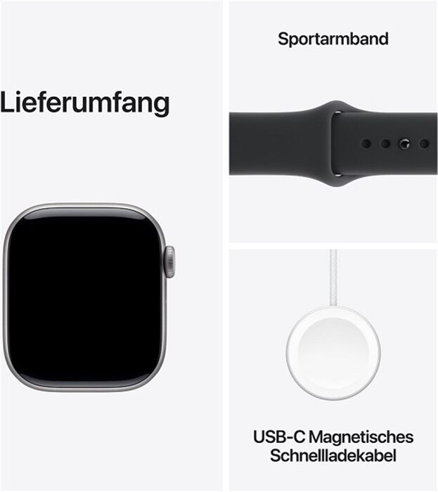 Artikeldetails für Apple Watch Series 11 (42mm)GPS Alu mit Sportarmban 2025 (space grau/schwarz)