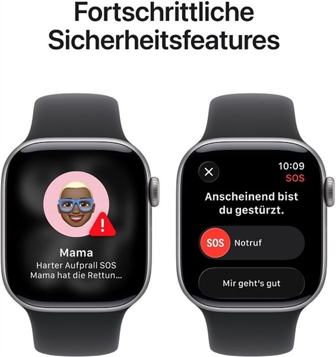 • SICHERHEITSFEATURES – Die Series 11 kann erkennen, ob du schwer gestürzt bist oder einen Autounfall hattest. Sie hilft dir automatisch, einen Notdienst zu kontaktieren und benachrichtigt deine Notfallkontakte.¹³