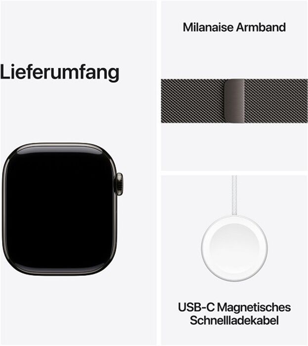 Artikeldetails für Apple Watch Series 11 (42mm) GPS+5G Titan mit Milanaise (schiefer/schiefer)