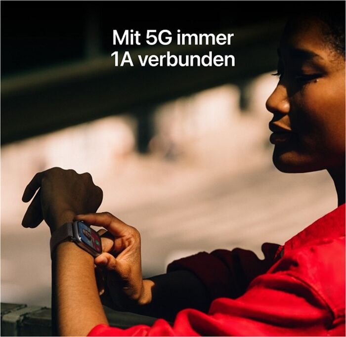 ² Datentarif erforderlich. 5G ist in ausgewählten Ländern und über ausgewählte Anbieter verfügbar. Die Geschwindigkeit kann je nach Standort und Anbieter variieren. Nähere Informationen zur 5G Unterstützung gibt es beim jeweiligen Mobilfunkanbieter und auf apple.com/de/watch/cellular.