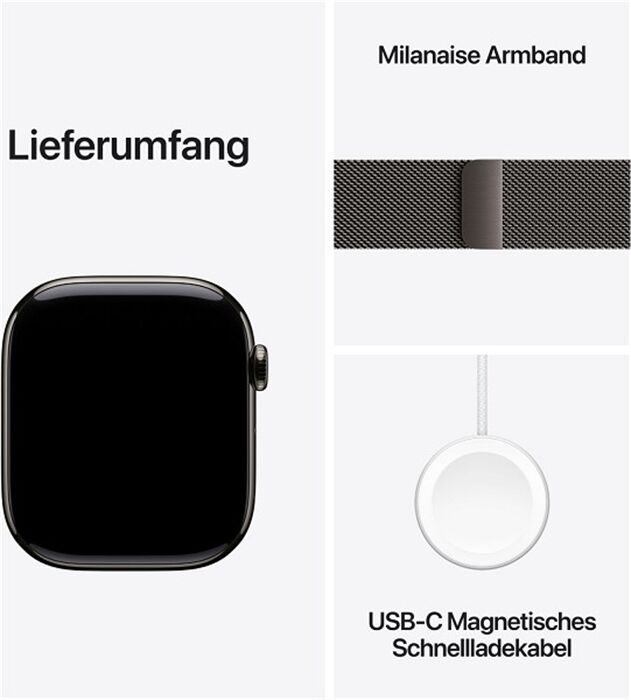 Artikeldetails für Apple Watch Series 11 (46mm) GPS+5G Titan Milanaise M/L (schiefer/schiefer)