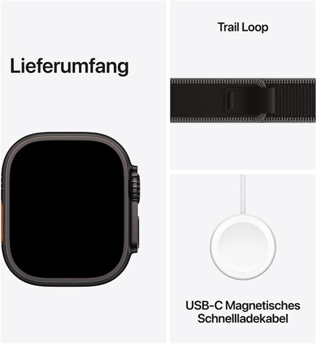 Artikeldetails für Apple Watch Ultra 3 (49mm) GPS+5G Titan Trail Loop (M/L) (schwarz/schwarz/ko)