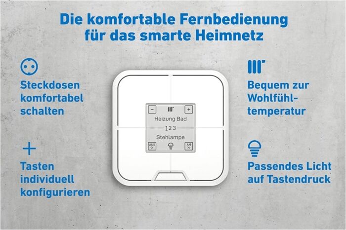 • Vier konfigurierbare Tasten für die komfortable Bedienung von FRITZ!-Produkten für das Smart Home