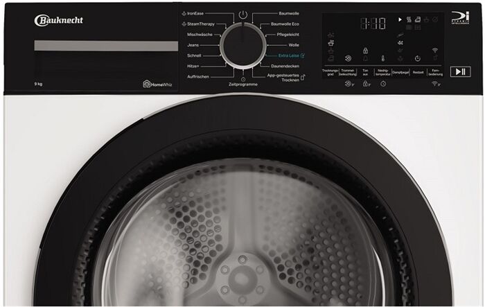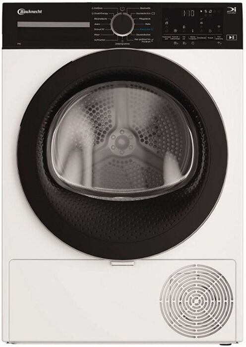 Leistungseigenschaften - Angabe gemäß EU-Verordnung 2023/2534 - optionale Smart Home Funktion - Anschlusswert (kW): 0.8 - Fassungsvermögen Trockenwäsche (kg): 9 - Energieeffizienzklasse: Energieeffizienzklasse C - Energieeffizienzspektrum: Spektrum [A bis G] - gew. Energieverbrauch/100 Zyklen in kWh: 106 - gemessen bei Programm: gemessen bei Eco Programm - Programmdauer Eco (Min): 195 - CO² Entsprechung -Total GWP: 3 - Kältemittelart: R 290 - Kondensationseffizienzklasse : Kondensationseffizienzklasse B - gewichtete Kondensationseffizienz: * %: 91 - Luftschallemissionsklasse: Luftschallemissionsklasse B - Betriebsgeräusch (dBA): 63 - Elektronische Steuerung - Update-Möglichkeit zur Programmaktualis. - Absicherung: 10 A Absicherung - 220-240V 50/60Hz Netzanschluss Automatik-Funktionen - Wärmepumpe - elektr. Feuchtigkeitsmessung - Knitterschutz Bedienung - Programmwahl: Ein-Knopf-Programmwahl - Start-/Pause-Taste - Schon-Taste für niedrigere Temperaturen - Leichtbügeln - Kurz-/Zeitspar-Taste - Start-Vorwahl - max. vorprogrammierbare Startzeit (Std.): 24 - Restzeitanzeige: Restzeitanzeige - Luftweg-Reinigungsanzeige - Flusensieb-Kontrolle: opt. Signal zur Flusensiebreinigung - Kondenswasser-Behälterkontrolle: opt. Wasserentleerungs-Signal - Programmanzeige: Programm-Ablaufanzeige - Programmende-Signal: akustisches Programmende-Signal - Display-Anzeige - Kindersicherung Programme - Anzahl Trocken-Programme: 15 - Baumwolle-Programm - Bügelfeucht-Programm - Pflegeleicht-Programm - Fein-Programm - Seiden-Programm - Woll-Programm - Lüften-Programm - Große Wäschestücke-Programm - Jeans-Programm - Blusen/Hemden-Programm - Mischwäsche-Programm - Outdoor-/ Sport-Programm - Schnelltrocknungs-Programm - Zeitwahl-Programme Trommel-/Trocken-Eigenschaften - Trommel-Material: Edelstahl-Trommel - Trommel-Innenbeleuchtung - Trommel mit Links-/Rechtsdrehung Gehäuse-Eigenschaften - Breite (cm): 59.8 - Höhe (cm): 84.6 - Tiefe (cm): 67.4 - Tiefe bei geöffneter Tür (cm): 104 - Leergewicht (kg): 46 - Bullauge - Anschlagseite der Tür: Rechts-Anschlag der Tür - höhenverstellbare Gerätefüße - Kondenswasser-Behälter in der Blende - Direkter Kondenswasserablauf möglich - Wasserablauf über Schlauch - Länge der Anschlussleitung (cm): 150 Verpackungsangaben - Breite mit Verpackung (cm): 65 - Höhe mit Verpackung (cm): 88.5 - Tiefe mit Verpackung (cm): 69 - Gewicht mit Verpackung (kg): 47 Farben - Gehäuse-Farben: weiß
