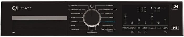 • Optionen: Start/Pause, Kurz-Option, Schonen, Trommelinnenbeleuchtung, Tonsignal am Programmende, Stumm, additional reversing