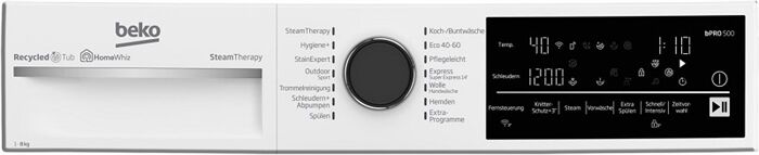 Artikeldetails für Beko Waschmaschine B5WFT78410W (weiß) A, 8, 1400