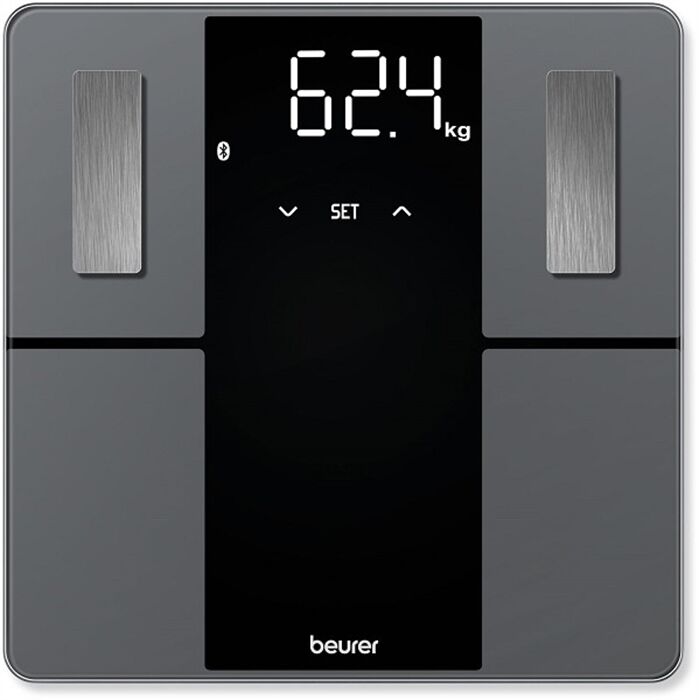 Energiequelle - Energiequelle: Batterie-Betrieb Ausstattung - Waagen-Typ: elektronische Personenwaage - Analyse-Waage - Körpermuskel-Analyse - Körperfett-Analyse - Körperfett-Anzeige in x %: 0.1 - Gramm-Schritte der Feineinteilung (g): 100 - max. Tragkraft (kg): 180 - Gewichtseinheit wählbar - Personenerkennung - Anzahl der Personenspeicher: 8 - Einschaltautomatik - Abschaltautomatik - Bluetooth-Schnittstelle - WLAN-Schnittstelle - Aktivitätskontrolle Anzeige - Anzeige-Typ: Digital-Anzeige - Höhe der Anzeige (cm): 2.8 - Display nur bei Messung sichtbar - Überlastungsanzeige Gehäuse-Eigenschaften - Höhe (cm): 2.7 - Gewicht (kg): 1.7 - Breite der Trittfläche (cm): 30 - Tiefe der Trittfläche (cm): 30 - Sicherheitsglas-Gehäuse