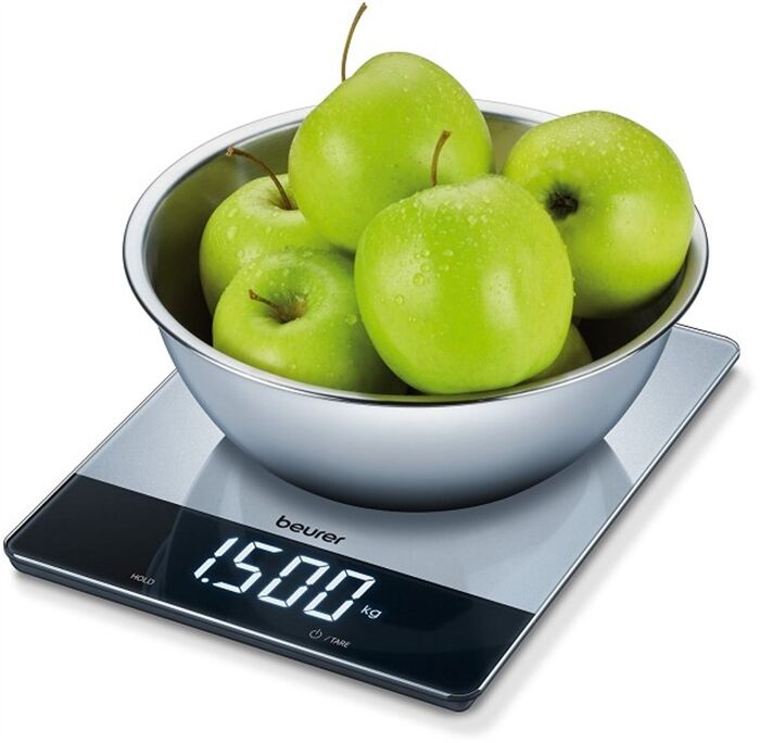 Energiequelle - Batterie: Batterie-Betrieb - Anzahl 1,5 V Mignon-Batterien: 4 Wiege-Eigenschaften - max. Tragkraft (g): 15000 - Gramm-Schritte der Feineinteilung (g): 1 Bedienung - Anzeige-Typ: LCD-Anzeige - Breite der Anzeige (cm): 9.5 - Höhe der Anzeige (cm): 2.5 - Display nur bei Messung sichtbar - Zuwiege-Funktion - On/Off/Tara-Taste - Abschaltautomatik - Hold-Funktion:dauerhafte Gewichtsanzeige - Gewichtseinheit wählbar - Überlastungsanzeige Schüssel-Eigenschaften - Schüssel: Waage ohne mitgelieferte Schale - Glas-Ablagefläche Gehäuse-Eigenschaften - Breite (cm): 20 - Höhe (cm): 2 - Tiefe (cm): 26.3 - Gewicht (kg): 0.725 Farben - Gehäuse-Farben: silber