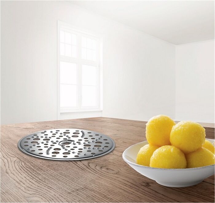 Reibscheibe grob in Edelstahl. Zum Reiben roher Kartoffeln z.B. für Klöße oder Reibekuchen. Für Durchlaufschnitzler der MUM4 und MUM5.