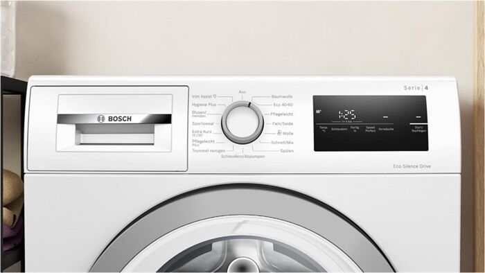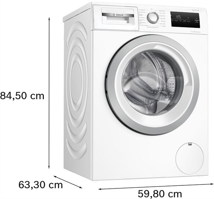 Leistungseigenschaften - Anschlusswert (kW): 2.3 - Leistungsaufnahme, Stand-By (W): 0.5 - Leistungsaufnahme, Netz-Aus (W): 0.15 - Fassungsvermögen Wäsche (kg): 8 - Angabe gem. EU-Verordnung 2019/2014 - Energieeffizienzklasse: Energieeffizienzklasse A - Energieeffizienzspektrum: Spektrum [A bis G] - gew. Energieverbrauch/100 Zyklen in kWh: 46 - Wasserverbrauch pro Betriebszyklus (l): 47 - Programmdauer Eco (Min): 213 - Schleuderwirkungsklasse: Schleuderwirkungsklasse B - Anzahl U/Min. der max. Schleuderstufe: 1400 - Restfeuchte (%): 53 - Restfeuchte b. x U/Min Schleuderdrehzahl: 1400 - Betriebsgeräusch, Schleudern (dBA): 72 - Geräuschemissionsklasse: Geräuschemissionsklasse A - Inverter-Technologie - Elektronische Steuerung - Absicherung: 10 A Absicherung - 220-240V 50/60Hz Netzanschluss Automatik-Funktionen - Aqua-Stopp-Schlauch - autom. Wasserdosierung nach Füllmenge - Schaumerkennung - Unwucht-Korrektur-System beim Schleudern - Knitterschutz am Programmende - Demo-Mode Bedienung - Programmwahl: Ein-Knopf-Programmwahl - Taste zur Drehzahlreduzierung - Wahlmöglichkeit "ohne Schleudern" - Wasch-Temperaturwahl: Tasten zur Temperaturwahl - Start-/Pause-Taste - Programmende vorwählbar - Zeitvorwahl: Zeitvorwahl - max. vorprogrammierbare Startzeit (Std.): 24 - Restzeitanzeige - Kurz-/Zeitspar-Taste - Spülstopp - Vorwäsche-Taste - Extra-Spülen - Dampf-Funktion - Beladungserkennung - Beladungsempfehlung - Waschmittelzugabe: Waschmittelzugabe von vorn - Programmende-Signal: Anzeige des Programmendes - Anzeige für Türverrieglung - Multifunktionsanzeige: Display-Anzeige - Klartext-Bedienfeld - Kindersicherung Programme - Baumwolle-Programm - Mischwäsche-Programm - Pflegeleicht-Programm - Fein-Programm - Handwasch-Programm für Wolle - Seiden-Programm - Leichtbügeln - Outdoor-/ Sport-Programm - Mini-Programm - Schnell-Programm - Kurz-Programm - Blusen/Hemden-Programm - Hygiene-Programm - ECO 40-60 - Kaltwaschen-Programm - Anzahl der Dampf-Programme: 1 - Reinigungsprogramm Trommel-/Einspül-Eigenschaften - Trommel-Material: Edelstahl-Trommel Gehäuse-Eigenschaften - einschubfähiges Gerät - Breite (cm): 59.8 - Höhe (cm): 84.5 - Höhenverstellung - Höhe um x cm verstellbar: 1.2 - Tiefe (cm): 59 - Tiefe über alles (cm): 63.3 - Tiefe bei geöffneter Tür (cm): 106.3 - Leergewicht (kg): 70.1 - Bullauge - Anschlagseite der Tür: Links-Anschlag der Tür - höhenverstellbare Gerätefüße - Länge der Anschlussleitung (cm): 160 Einbau-Eigenschaften - Nischen-Höhe (cm): 85 Verpackungsangaben - Breite mit Verpackung (cm): 64 - Höhe mit Verpackung (cm): 87 - Tiefe mit Verpackung (cm): 69.2 - Gewicht mit Verpackung (kg): 71.1 Farben - Gehäuse-Farben: weiß
