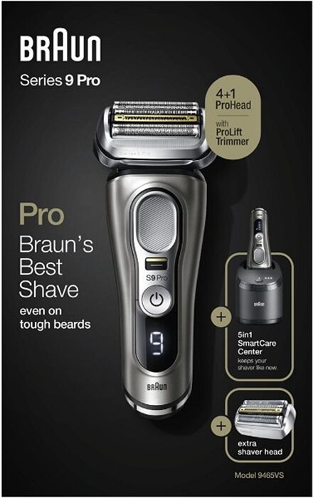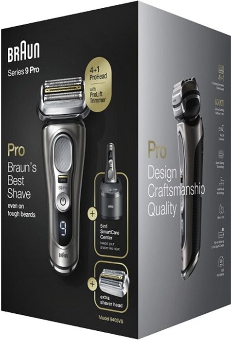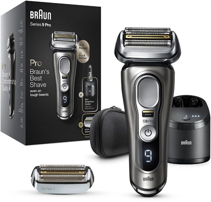 Der Braun Series 9 Pro ist der effizienteste elektrische Rasierer von Braun, neu erfunden, um noch besser zu sein. Der Series 9 Pro Elektrorasierer ist effizient und sanft, egal ob Sie einen 1-, 3- oder 7-Tage-Bart haben. Der Rasierer für Herren ist mit dem einzigartigen ProLift Trimmer ausgestattet, der lange und flach anliegende Haare anhebt und schneidet. Dieser Trockenrasierer verfügt über eine 5-in-1 Reinigungsstation (SmartCare Center), die Ihren Rasierapparat hygienisch reinigt, sodass er jeden Tag wie neu funktioniert. Der Rasierer erfasst problemlos auch widerspenstige Haare, dank des neuen Präzisionsschalters – besonders praktisch in schwer zugänglichen Bereichen. Im Lieferumfang enthalten: