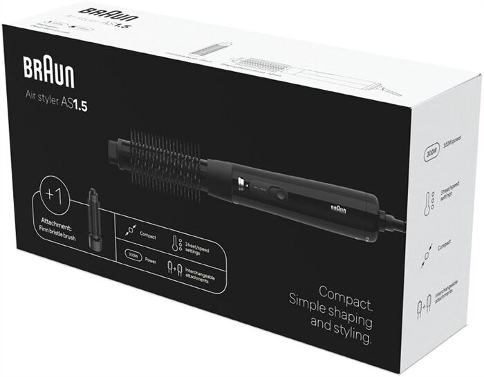 Der kompakte Braun Airstyler AS1.5 wurde für einfaches und zuverlässiges Trocknen und Stylen in einem Gerät entwickelt.