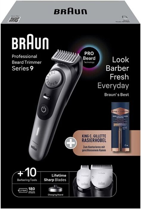 Für einen Barber Fresh Look zu Hause: Braun Professional Series 9 Barttrimmer. Der Trimmer dient auch als Haarschneider / Haarschneidemaschine und ist als Geschenk für den Mann ideal geeignet.