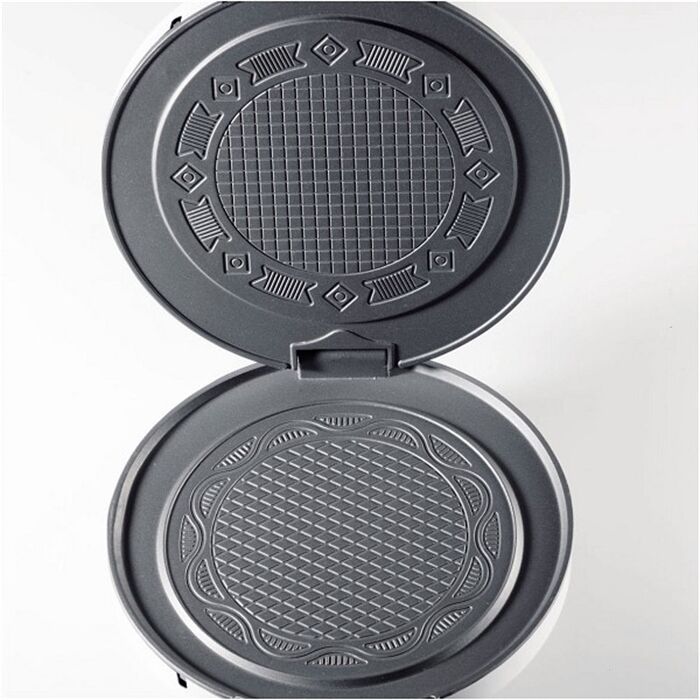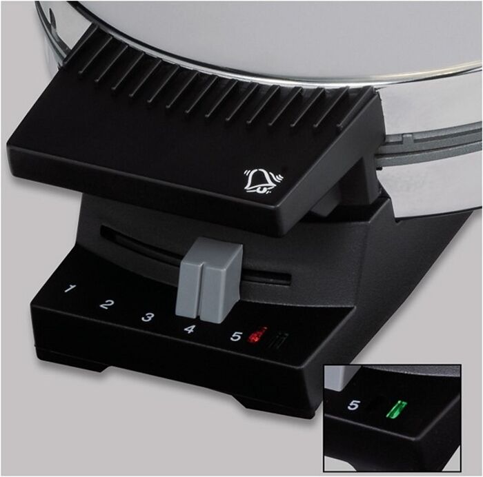 Leistungseigenschaften - max. Heizleistung (W): 800 Waffeleisen-Ausstattung - Durchmesser der Waffeln (cm): 15 - Hörnchen, rund - Griff-Verriegelungssystem Bedienung - Temperaturregelung: stufenlose Temperatureinstellung - Anzahl der Temperaturstufen: 5 - Betriebskontrollanzeige - Backzeit-Kontrollleuchte - akustisches Backzeitende-Signal - Steckerdepot - manuelle Kabelaufwicklung Gehäuse-Eigenschaften - Gewicht (kg): 2.7 Farben - Gehäuse-Farben: edelstahl