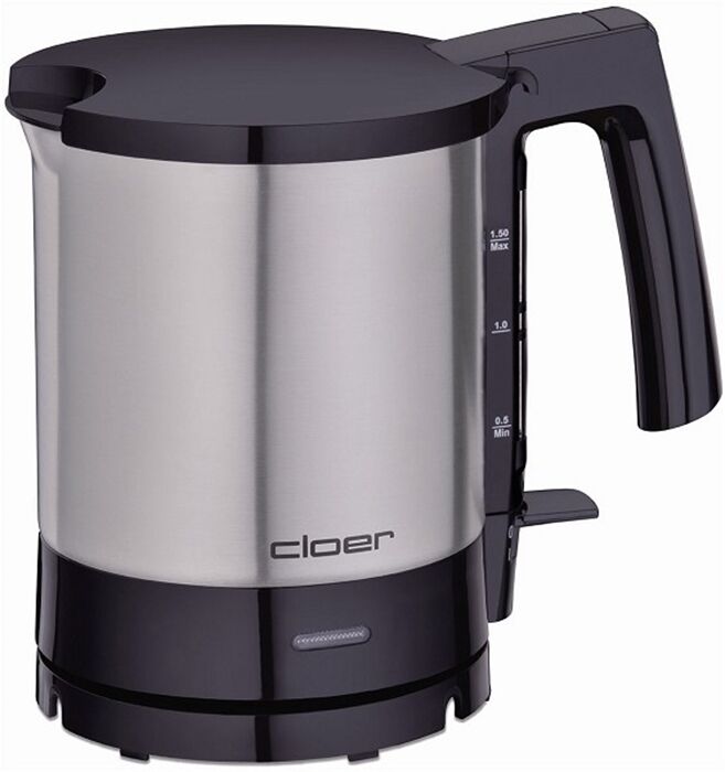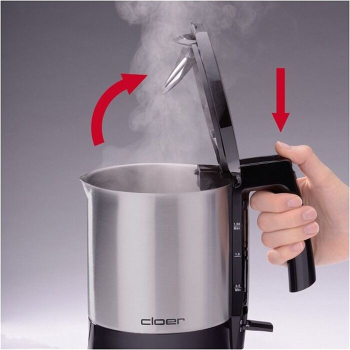 Trockengehschutz, Automatisches Abschalten nach Beendigung des Kochvorgangs, Verdecktes Heizelement, Mattierter Edelstahlbehälter, 1,5 l Inhalt