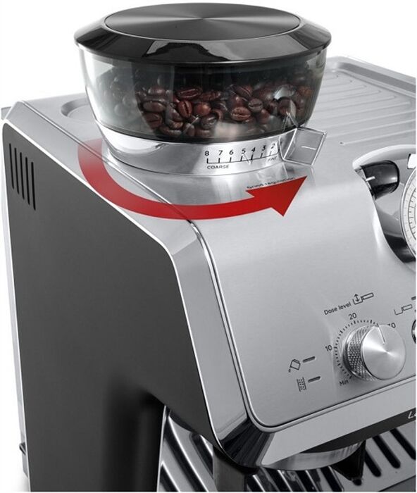 • Integriertes Kegelmahlwerk mit 8 Mahlgradeinstellungen,