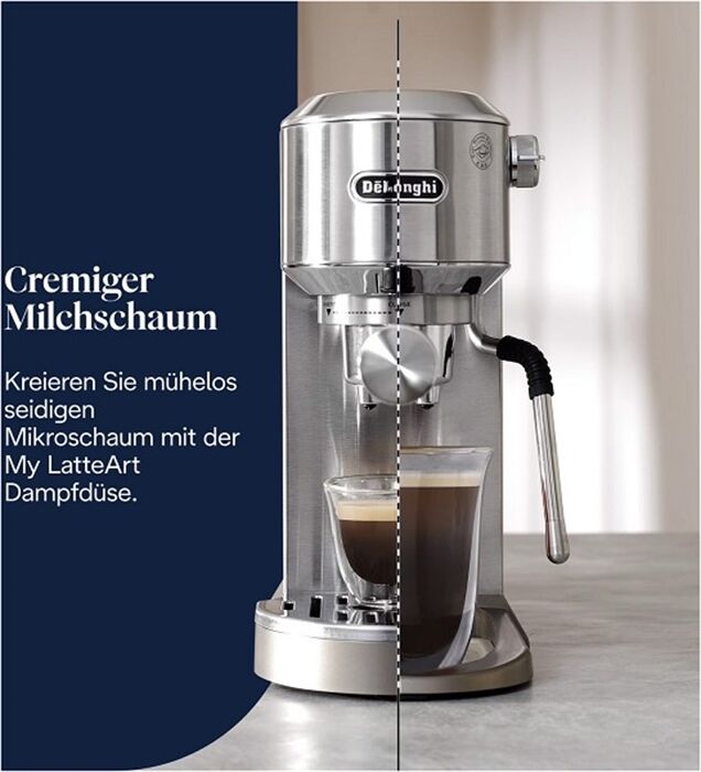 Italienisches Barista Feeling für zuhause – Die Dedica Duo besticht durch ihr schlichtes, italienisches Design & sorgt für ein echtes Barista-Gefühl. Perfekter Milchschaum & aromatischer Cold Brew