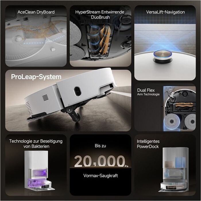 Als leistungsstarker Saug- und Wischroboter kombiniert er modernste Technologien mit maximalem Bedienkomfort, um ein makellos sauberes Zuhause zu gewährleisten.
