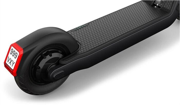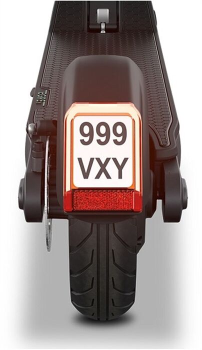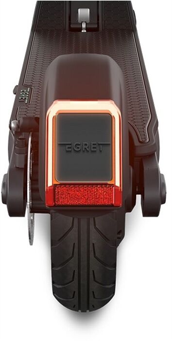 Das LED-Rücklicht lässt den Egret Pro zum Blickfänger werden. Das Bremslicht zeigt Nachfolgern an, dass du langsamer wirst. Das Kennzeichen ist zentral im Rücklicht integriert.