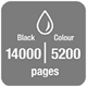 • Ein Tintensatz druckt bis zu 14.000 Seiten in Schwarzweiß und 5.200 Seiten in Farbe*