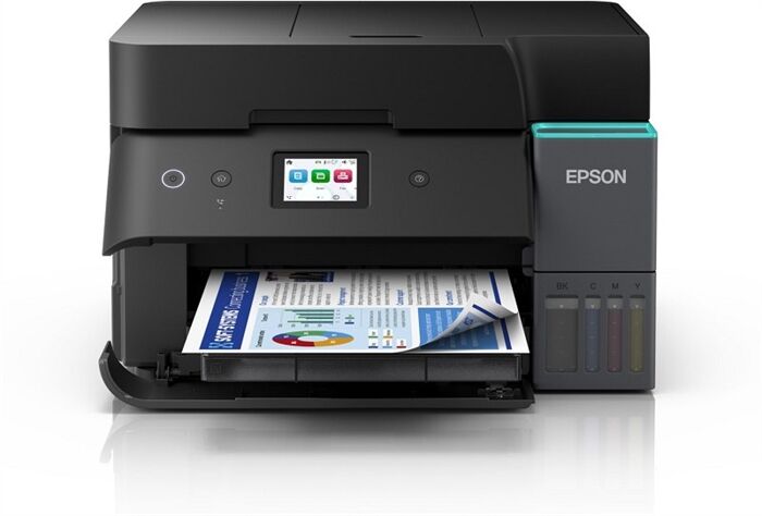 EcoTank ermöglicht komfortables Drucken zu Hause und im Büro. Die großvolumigen Tintentanks ermöglichen ein unkompliziertes Nachfüllen. Da die Tintenflaschen über ein Schlüssel-Schloss-Prinzip funktionieren, kann nur die jeweils richtige Tinte eingefüllt werden. Dank der Tintenstandsanzeige auf der Vorderseite können Sie leicht erkennen, wann ein Nachfüllen fällig ist, und dank der eleganten blauen Leuchte auf der Abdeckung des Tintentanks können Sie den Status Ihres Druckers auf einen Blick erkennen.